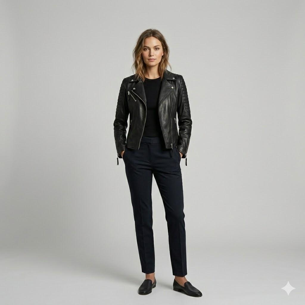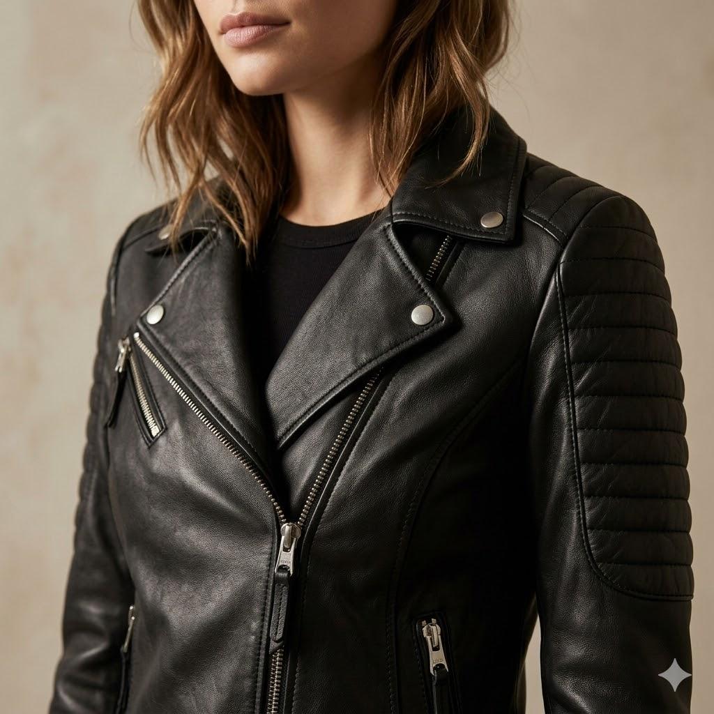 KADIN DERİ CEKET (ÇAPRAZ FERMUARLI)