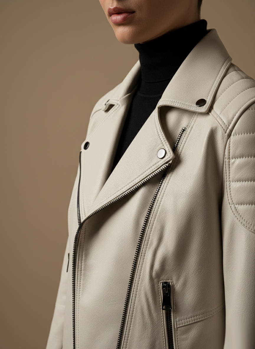 Sonbahar ve kış aylarının vazgeçilmezi olan Siyah Fermuar Kontrastlı Asimetrik Kesim İnci Deri Mont, stil sahibi bireylerin gardırobundaki en gösterişli parçalardan biridir. Modern tasarımı ve dikkat çekici detaylarıyla hem günlük hem de özel etkinliklerde rahatlıkla kullanılabilir.