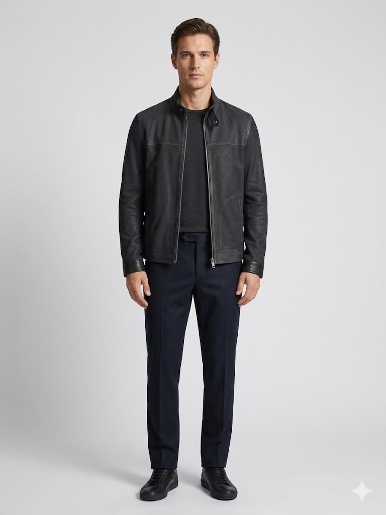 - Perfore Detaylar: Ceket üzerindeki delikli tasarım, havalandırma sağlar ve spor bir görünüm sunar.